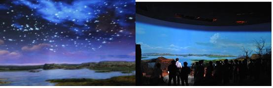 帶著對(duì)水洞溝的好奇,坐上大巴,很快見到了傳說中的水洞溝,剛走進(jìn)大門,看到的是一片荒涼,心中不免有些失望。隨著導(dǎo)游的聲音,走進(jìn)了水洞溝遺址博物館實(shí)景體驗(yàn)區(qū),我的心情豁然開朗,從繁星點(diǎn)點(diǎn)的蒼穹、裊裊升起的炊煙、成群奔跑的犀牛、鴕鳥、羚羊,到水洞溝人打磨石器、分割獵物、制作鴕鳥蛋皮項(xiàng)鏈,到家園被毀、水洞溝人含淚離開,我們?cè)诙潭?0分鐘內(nèi)體驗(yàn)到“夢(mèng)回三萬年”的情景。一切都是那么真實(shí),那么鮮活,仿佛遠(yuǎn)古的水洞溝先民就從我們身邊緩緩走過。