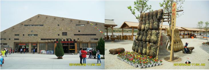 我們?cè)谏称骂^旅游黃河區(qū)(南區(qū))買了門票,隨著人流,進(jìn)入景區(qū)。景區(qū)主大門是一個(gè)四四方方的立柱,加上“井”字形建筑造型構(gòu)成,立柱頂部呈長(zhǎng)城烽火臺(tái)垛口造型,立柱右側(cè)上部有三個(gè)鎏金大字“沙坡頭”。 在景區(qū)大門東側(cè),是沙漠博物館,它的頂部呈金字形造型,游客可以免費(fèi)進(jìn)去參觀。