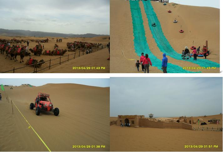 4月29日,吃罷早餐,簡(jiǎn)單準(zhǔn)備,我們登上了去中衛(wèi)的中巴,開始了我們的旅程。約一小時(shí)的路程,我們到了中衛(wèi),一下中巴車,馬上就感受到了旅游旺季旅游景點(diǎn)的“熱”。在中衛(wèi)汽車站,沙坡頭旅游公司工作人員得知我們?nèi)ド称骂^玩,便熱情向我們介紹旅游套餐。各種游玩項(xiàng)目?jī)r(jià)格令人嗔舌,沙坡頭旅游景區(qū)門票在淡季2元/人,在“五一”小長(zhǎng)假這樣的旺季,立刻飆升到90元/人,寧夏籍的游客憑身份證每人可以享受65元優(yōu)惠價(jià),大部分游玩項(xiàng)目?jī)r(jià)格都在80元/人。